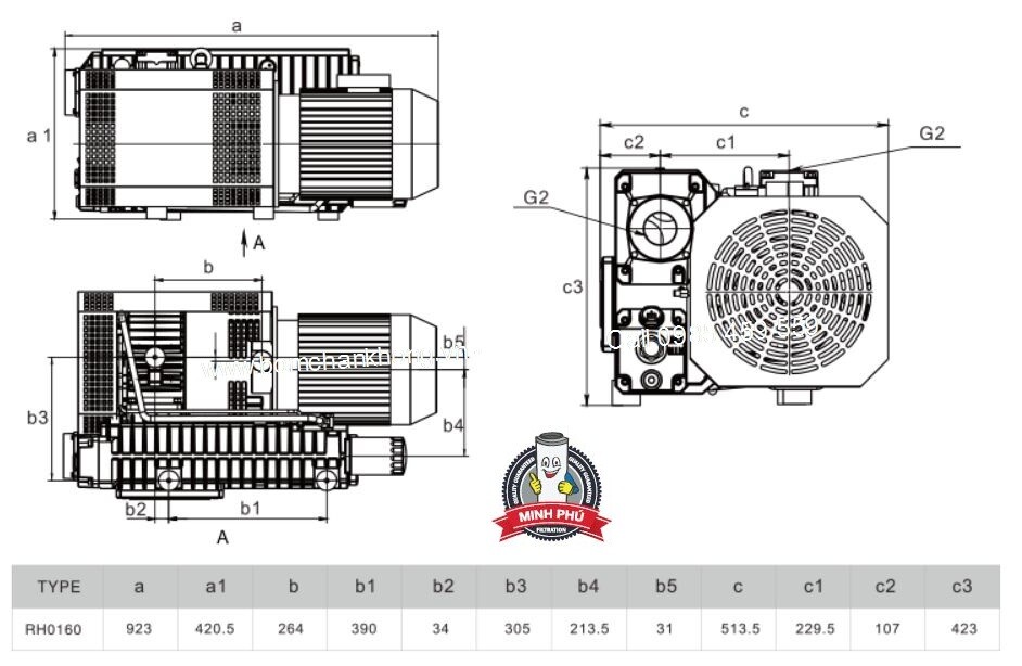 Kích thước Bơm chân không HOKAIDO RH0160