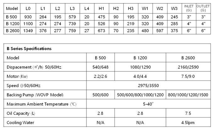 Thông số kỹ thuật: B-500, B-1200,B-2600