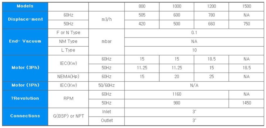 Lưu lượng : 750m3/ giờ ( 50HZ)