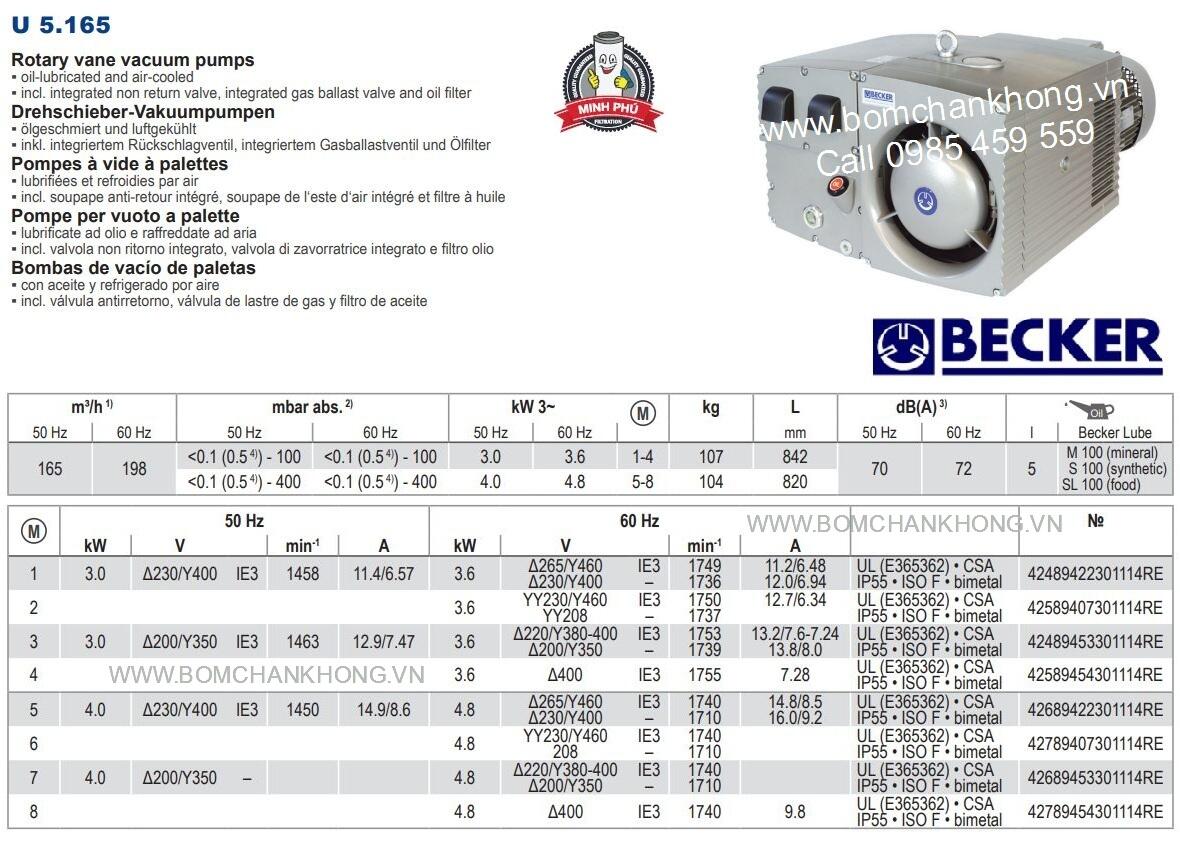 - BƠM HÚT CHÂN KHÔNG BECKER U5.165