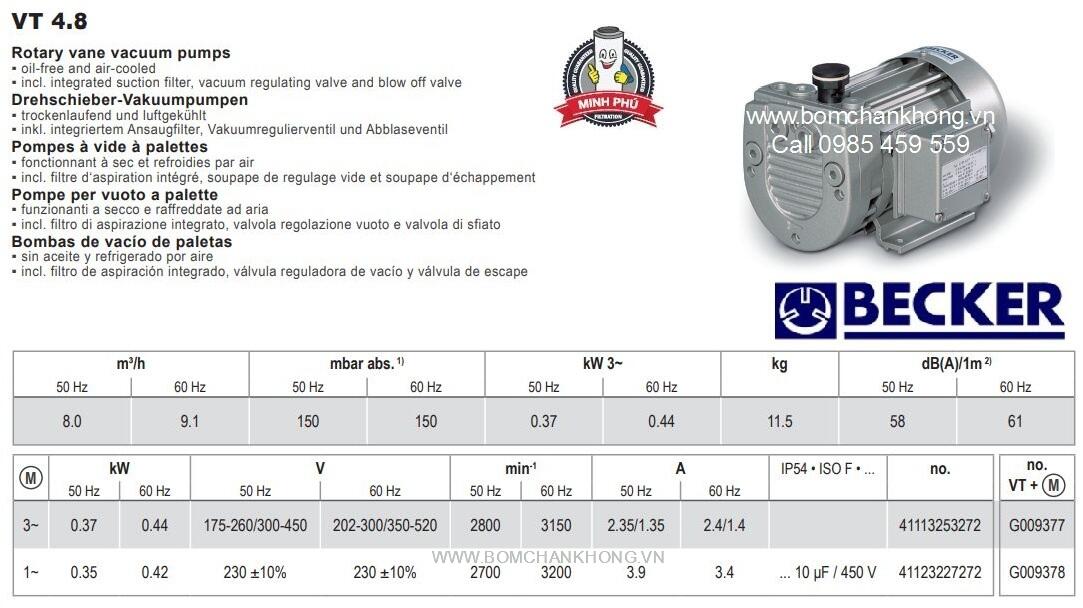 - BƠM CHÂN KHÔNG KHÔ BECKER VT 4.8