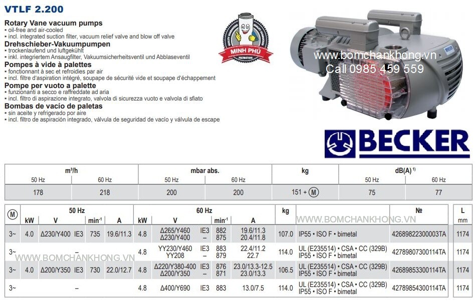 BƠM HÚT CHÂN KHÔNG BECKER VTLF 2.200