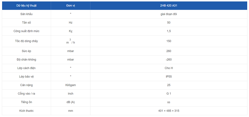 MÁY THỔI KHÍ ĐÔI 2HB 420 A31